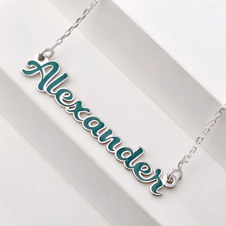 Lantisor cu nume si email turcoaz - Argint 925 Acest lănțișor personalizat este realizat din Argint 925 de înaltă calitate, ideal pentru un look rafinat și modern. Emailul turcoaz adaugă o notă vibrantă și distinctivă, evidențiind cu stil numele și adresa de email gravate. Este perfect pentru a oferi un cadou original sau pentru a-ți completa ținuta cu un element unic. Comandă acum și poartă-ți numele cu eleganță și personalitate, zi de zi! Caracteristici produs: Material: Argint 925 Inaltime pandantiv: 7 mm Decorare: Nume personalizat cu email turcoaz Greutate: Aproximativ 2.7 grame Procesul de productie Chic Bijoux: Aceasta bijuterie personalizata este realizata de la zero pentru fiecare comanda in parte. Dupa plasarea si confirmarea comenzii, incepe procesul ei de creatie: Realizare Design -> Taiere/Personalizare -> Finisare manuala -> Polish Final -> Ambalare -> Livrare! Datorita procesului de productie si a personalizarii bijuteriei dupa propria dorinta, gramajul final al produsului poate varia . Pe site este afisat gramajul obtinut prin cantarirea produsului din pozele de prezentare. Pretul include, pe langa costul gramului de Argint 925 , intregul proces de productie si personalizare, garantand un produs unic si special, creat doar pentru tine. De ce sa alegi Chic Bijoux? Fiecare bijuterie Chic Bijoux este realizata cu pasiune, respectand cele mai inalte standarde de calitate: Bijuterii unice realizate manual, personalizate pentru fiecare client. Ambalaj premium, perfect pentru a fi oferit cadou. Garantia calitatii: din 2010 producem bijuterii din metale pretioase de cea mai bună calitate folosind tehnologie de ultimă generație și finisare manuală. Dupa plasarea comenzii, vei fi contactat de un reprezentant al echipei Chic Bijoux pentru toate detaliile necesare personalizarii produsului si a ne asigura ca produsul final corespunde asteptarilor tale.
