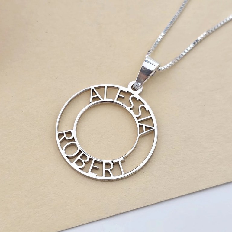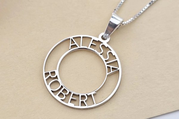Lantisor cu pandantiv disc - personalizat cu doua nume decupate - Argint 925