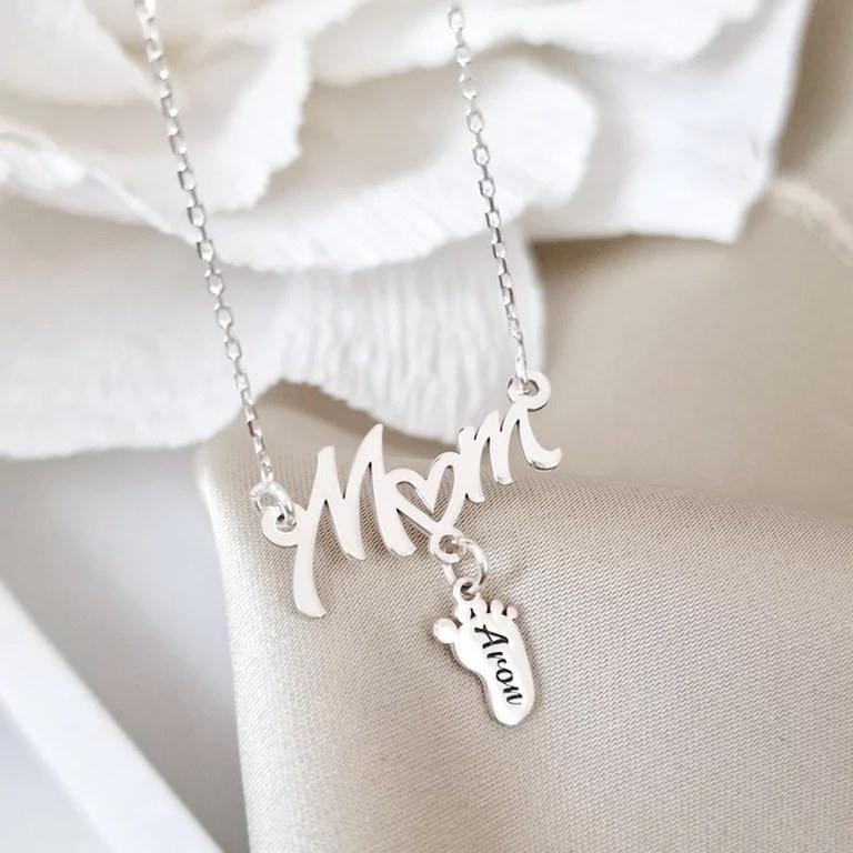 Lantisor cu pandantiv Mom si 1 piciorus - Argint