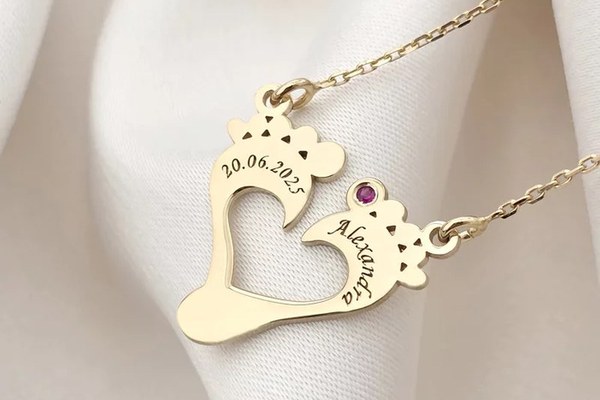 Lantisor cu pandantiv personalizat - contur picioruse in forma de inimioara - nume personalizat - Rubin - Lant link - Argint 925 placat cu Aur Galben 18K Acest lănțișor delicat are un pandantiv cu contur de piciorușe aranjate în forma unei inimioare, simbolizând dragostea nemărginită pentru cel mic. Este personalizat cu numele dorit și înfrumusețat cu un rubin elegant, adăugând un strop de culoare și rafinament. Realizat din Argint 925 și placat cu Aur Galben de 18K, este o bijuterie cu valoare emoțională profundă. Comandă acum și poartă mereu aproape de inimă cea mai frumoasă amintire – iubirea de mamă! Caracteristici produs: Material: Argint 925 placat cu Aur Galben 18K Dimensiuni: 20x18 mm Decorare: simbol picioruse personalizate Greutate: Aproximativ 2.9 grame Procesul de productie Chic Bijoux: Aceasta bijuterie personalizata este realizata de la zero pentru fiecare comanda in parte. Dupa plasarea si confirmarea comenzii, incepe procesul ei de creatie: Realizare Design -> Taiere/Personalizare -> Finisare manuala -> Polish Final -> Ambalare -> Livrare! Datorita procesului de productie si a personalizarii bijuteriei dupa propria dorinta, gramajul final al produsului poate varia . Pe site este afisat gramajul obtinut prin cantarirea produsului din pozele de prezentare. Pretul include, pe langa costul gramului de Argint 925 , intregul proces de productie si personalizare, garantand un produs unic si special, creat doar pentru tine. De ce sa alegi Chic Bijoux? Fiecare bijuterie Chic Bijoux este realizata cu pasiune, respectand cele mai inalte standarde de calitate: Bijuterii unice realizate manual, personalizate pentru fiecare client. Ambalaj premium, perfect pentru a fi oferit cadou. Garantia calitatii: din 2010 producem bijuterii din metale pretioase de cea mai bună calitate folosind tehnologie de ultimă generație și finisare manuală. Dupa plasarea comenzii, vei fi contactat de un reprezentant al echipei Chic Bijoux pentru toate detaliile necesare personalizarii produsului si a ne asigura ca produsul final corespunde asteptarilor tale.