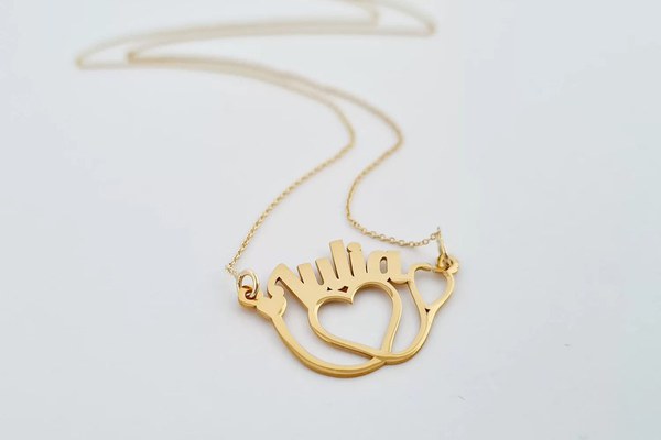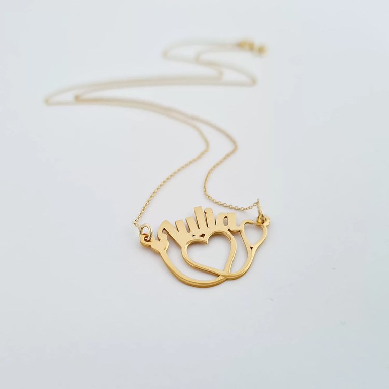 Lantisor cu pandantiv personalizat - Stetoscop si nume decupate - Aur Galben 14K