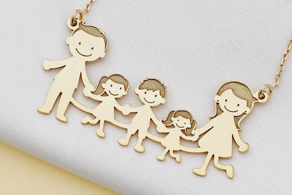 Lantisor Familie - 5 Membri - Argint 925 placat cu Aur Galben 18K