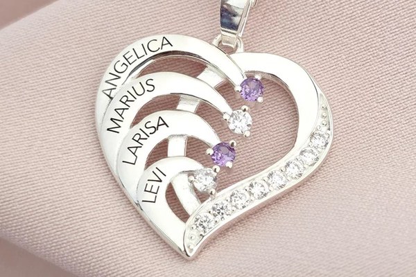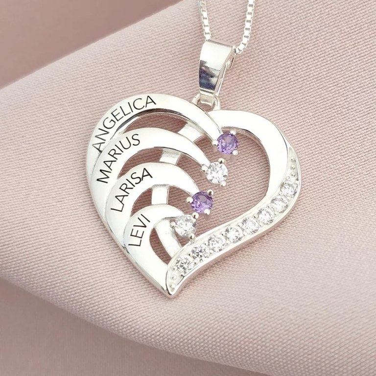 Lantisor Inima cu Poveste - 4 nume si Cristale Zirconia - Argint 925