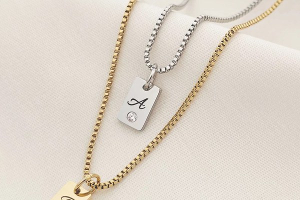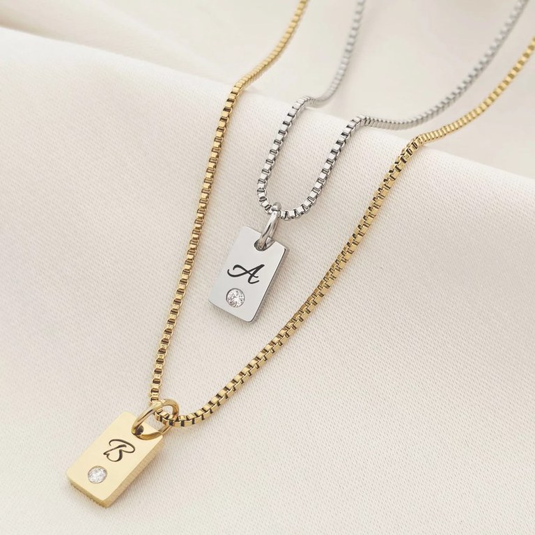 Lantisor Lumia – Placute cu initiale & cristal Zirconia - Otel Inoxidabil 316L
