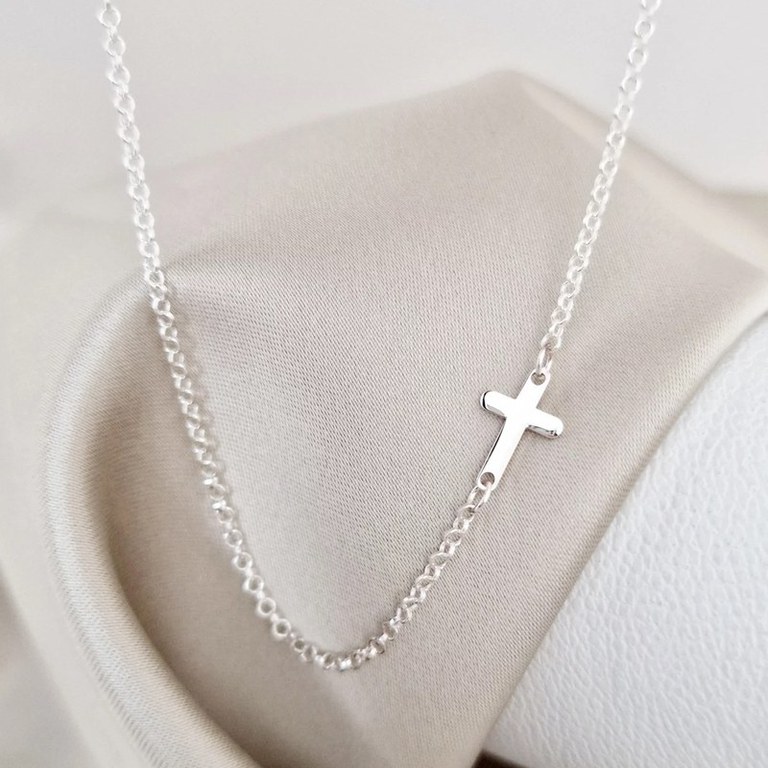 Lantisor minimalist - Pandantiv lateral Cruciulita - Argint 925