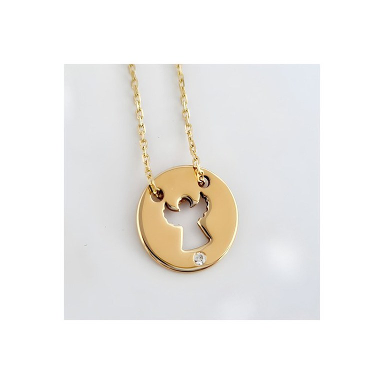 Lantisor personalizat cu Diamant natural - Pandantiv banut ingeras decupat - Aur Galben 14 K