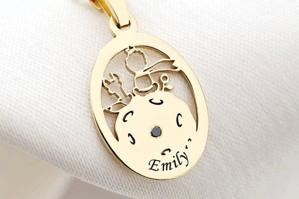 Lantisor personalizat cu Diamant natural - Pandantiv Micul Print decupat si Nume personalizat- Argint 925 placat cu Aur Galben 18K