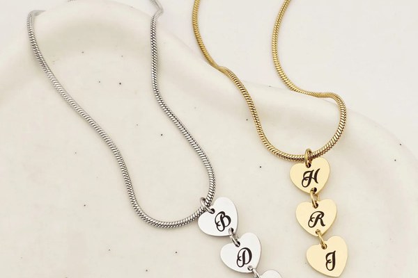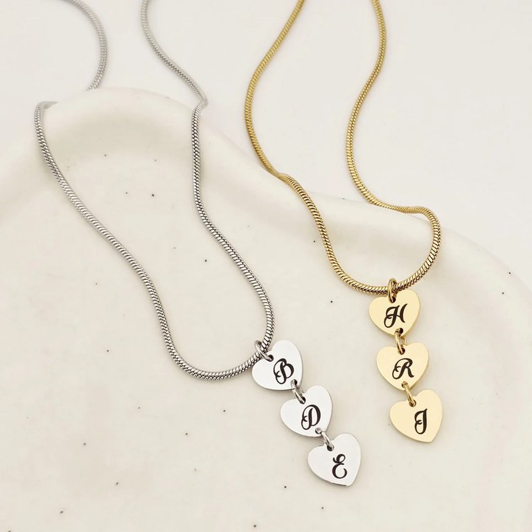 Lantisor Trei Inimi – Personalizate cu Initiale – Otel Inoxidabil 316L
