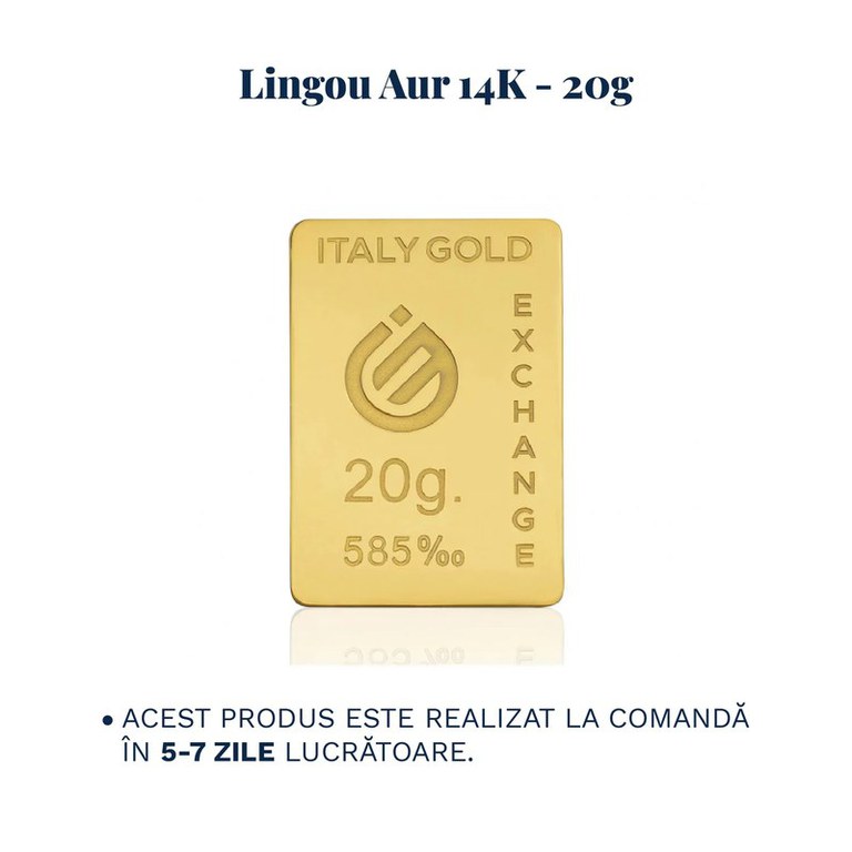 Lingou de Aur 14K de 20 grame - Personalizabil – Eleganta, Valoare si Mostenire Durabila Transforma un moment special intr-o amintire de nepretuit cu lingoul de Aur 14K de 20g (titlu 585), certificat „Italy Gold Exchange”. Oferind un echilibru perfect intre rafinament, siguranta si valoare, acest lingou este alegerea ideala pentru un cadou exclusivist, o investitie inteligenta sau un simbol al prosperitatii transmise din generatie in generatie. Important: Personalizarea pe verso (simbol/nume/data) se realizeaza cu un laser de ultima generatie care graveaza doar la suprafata fara a influenta greutatea oficiala a lingoului. Prin urmare, pe fata lingoului detaliile (producator/carataj/gramaj) sunt gravate in adancime iar pe verso personalizarea este realizata cu o gravura fina de suprafata. ✔️ Certificat si Garantat – Titlul si greutatea sunt mentionate cu precizie pe fata lingoului, confirmand autenticitatea si valoarea sa reala. ✔️ Ambalaj pentru cadou - Lingoul personalizat se livrează într-un plic premium care conține certificatul de garanție și autenticitate de la producător dar și posibilitatea de a scrie de mână un mesaj personalizat. ✔️ Personalizare cu Mesaj Unic – Transforma lingoul intr-o bijuterie a amintirilor! Opteaza pentru personalizarea pe spatele lingoului si adauga un simbol, un nume sau o data memorabila. Ideal pentru cadouri corporate, aniversari, botezuri sau pentru a marca un succes personal. ✔️ Etica si Responsabilitate – Certificarea RJC (Responsible Jewellery Council) atesta faptul ca aurul provine din lanturi etice de aprovizionare, garantand sustenabilitate si respect pentru mediu si comunitati. Cadoul Perfect pentru Eternitate Un lingou de aur nu este doar o achizitie, ci si o mostenire durabila, un simbol de stabilitate, rafinament si investitie sigura. Fie ca il oferi unei persoane dragi sau il pastrezi ca activ valoros, acest lingou ramane o declarație de eleganta si prestigiu. ✔️ Livrare in Ambalaj Premium – Fiecare lingou este livrat intr-un ambalaj elegant, gata de oferit drept cadou de exceptie. Descoperă frumusetea unui lingou de aur personalizat si ofera un cadou atemporal, sofisticat si plin de însemnătate. Caracteristici lingou: Material: Aur 14K Dimensiuni: 45 x 30 mm Greutate 20g Carate 585 Cutie CADOU Italy Gold Exchange Garantie pe viață Procesul de productie al lingourilor personalizate IGE GOLD Aceasta lingou de Aur 14K este certificat „Italy Gold Exchange” Fiecare lingou este imprimat si prelucrat CNC pentru precizie milimetrica Personalizarea este realizata laser cu o gravură care rezista pentru totdeauna Lingoul este lustruit manual si verificat conform celor mai inalte standarde de calitate ISO 9001 Personalizarea se realizeaza pe spatele lingoului *Lingourile se vor personaliza doar după achitarea unui avans de 30%. De ce sa alegi Chic Bijoux? Fiecare bijuterie Chic Bijoux este realizata cu pasiune, respectand cele mai inalte standarde de calitate Bijuterii unice realizate manual, personalizate pentru fiecare client. Ambalaj premium, perfect pentru a fi oferit cadou. Garantia calitatii: din 2010 producem bijuterii din metale pretioase de cea mai bună calitate folosind tehnologie de ultimă generație si finisare manuala. Dupa plasarea comenzii, vei fi contactat de un reprezentant al echipei Chic Bijoux pentru toate detaliile necesare personalizarii produsului si a ne asigura ca produsul final corespunde asteptarilor tale. Lingourile personalizate nu se pot returna decat daca prezinta defecte de fabricatie sau greseli de personalizare.