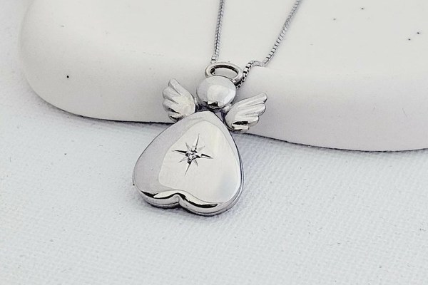 Medalion inger cu poze in interior - Golden Angel - Argint 925 Rodiat - Cristal White Zirconia