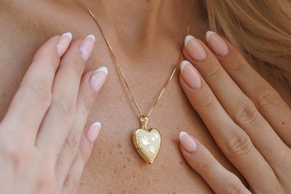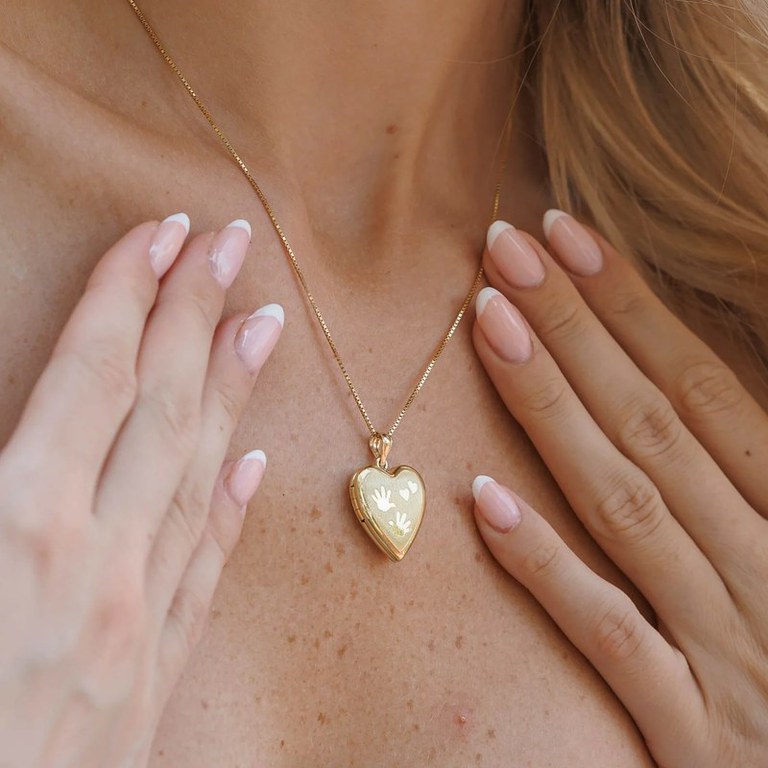 Medalion inima cu poze in interior - Handprints and Hearts - Argint 925 placat cu Aur Galben 18K