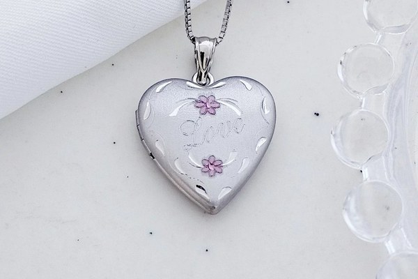 Medalion inima cu poze in interior - Love Blossoms - Argint 925 Rodiat