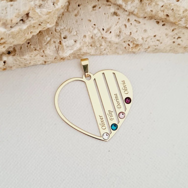 Pandantiv Familie Inima - 4 membri - Aur Galben 9K cu cristale Swarovski