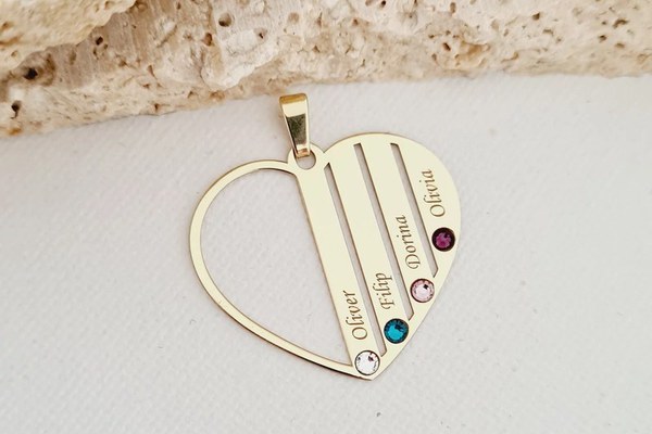 O bijuterie personalizata care va starnii emotii, amintiro si zambete. Ofera din toata inima o inima de Aur. Despre produs: Pandantul este realizat din Aur Galben 9K prin gravare si taiere laser de ultima generatie Acesta are dimensiunea de 25x28 mm Cristalele Swarovski atasate pot fi alese in functie de luna nasterii fiecaruia sau de culoarile preferate. (vezi poza explicativa) Bijuteria poate fi personalizata cu pana la 7 nume. Pretul difera in functie de numarul de nume gravate. Gramaj aproximativ AUR 9K (375): 1.87 grame Aceasta bijuterie personalizata este realizata de la zero pentru fiecare comanda in parte. Dupa plasarea si confirmarea comenzii incepe procesul ei de creatie: Realizare Design -> Taiere/Personalizare -> Finisare manuala -> Polish Final -> Ambalare -> Livrare! Pretul produsului include pe langa costul gramului de Aur 9K si tot procesul de mai sus, necesar pentru realizarea unui produs cu adevarat special pentru tine. Datorita procesului de productie si a personalizarii bijuteriei dupa propria dorinta gramajul final al produsului poate fi diferit. Din acest motiv pe site este afisat gramajul obtinut prin catarirea produsului realizat in pozele de prezentare. Dupa plasarea comenzii veti fi contactat de o colega din echipa Chic Bijoux pentru toate detaliile necesare personalizarii produsului. Toate produsele din Aur Galben 9K comercializate de Chic Bijoux sunt marcate cu titlul Aurului 375.