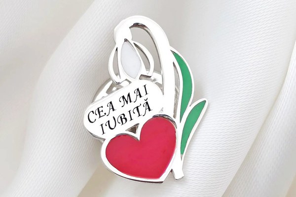 Pin Ghiocel - personalizat cu inima colorata si text - Argint 925 Acest pin din Argint 925 înfățișează un ghiocel grațios, completat de o inimă colorată ce adaugă farmec și personalitate. Textul subtil de pe pin transmite un mesaj plin de căldură și optimism. Finisajele atent lucrate și calitatea materialului îl fac un accesoriu elegant și durabil. Adaugă un strop de primăvară și emoție ținutelor tale – comandă pinul „Ghiocel” chiar acum! Acest produs unic este creat manual, cu o atentie deosebita la detalii, pentru a reflecta pasiunea Chic Bijoux de a transforma fiecare comanda intr-o adevarata opera de arta. Caracteristici produs: Material: Argint 925 Dimensiuni: 20 mm Decorare: Decorat cu simbol ghiocel si inima cu email Greutate: Aproximativ 1.20 grame Procesul de productie Chic Bijoux: Aceasta bijuterie personalizata este realizata de la zero pentru fiecare comanda in parte. Dupa plasarea si confirmarea comenzii, incepe procesul ei de creatie: Realizare Design -> Taiere/Personalizare -> Finisare manuala -> Polish Final -> Ambalare -> Livrare! Datorita procesului de productie si a personalizarii bijuteriei dupa propria dorinta, gramajul final al produsului poate varia . Pe site este afisat gramajul obtinut prin cantarirea produsului din pozele de prezentare. Pretul include, pe langa costul gramului de Argint 925 , intregul proces de productie si personalizare, garantand un produs unic si special, creat doar pentru tine. De ce sa alegi Chic Bijoux? Fiecare bijuterie Chic Bijoux este realizata cu pasiune, respectand cele mai inalte standarde de calitate: Bijuterii unice realizate manual, personalizate pentru fiecare client. Ambalaj premium, perfect pentru a fi oferit cadou. Garantia calitatii: din 2010 producem bijuterii din metale pretioase de cea mai bună calitate folosind tehnologie de ultimă generație și finisare manuală. Dupa plasarea comenzii, vei fi contactat de un reprezentant al echipei Chic Bijoux pentru toate detaliile necesare personalizarii produsului si a ne asigura ca produsul final corespunde asteptarilor tale. Toate produsele din Argint 925 comercializate de Chic Bijoux sunt marcate cu titlul Argintului · 925.