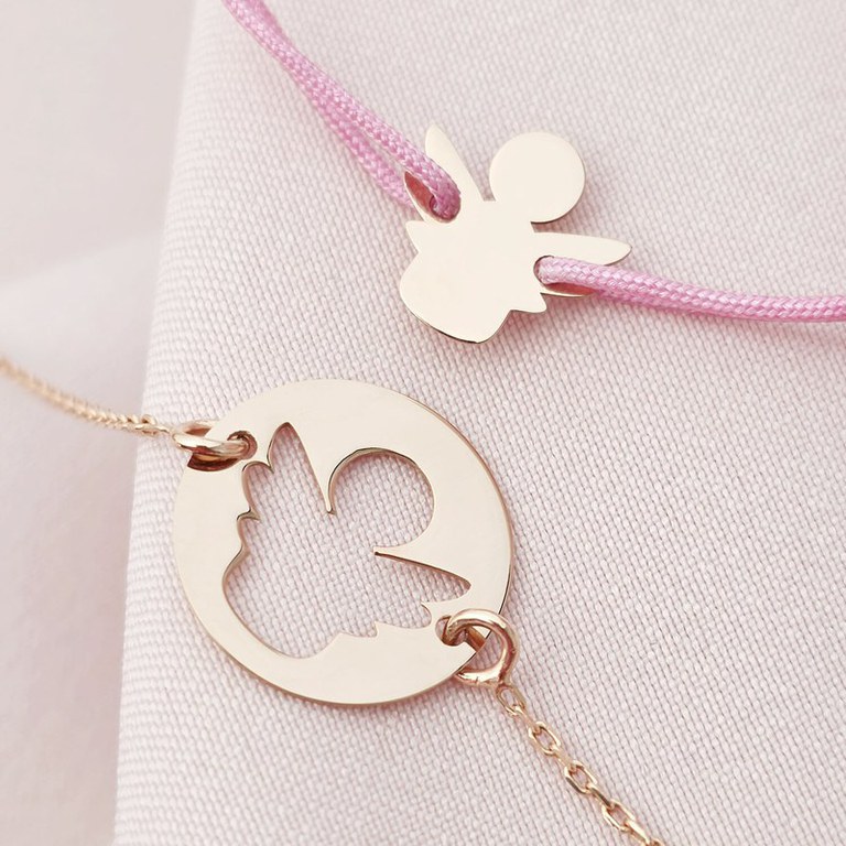 Set 2 bratari - banut cu ingeras decupat - Argint 925 placat cu aur roz 18K