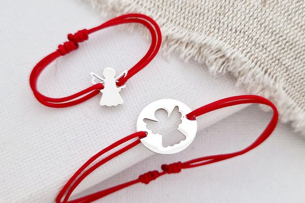 Set 2 bratari - banut cu ingeras decupat - Argint 925 - Snur reglabil diverse culori