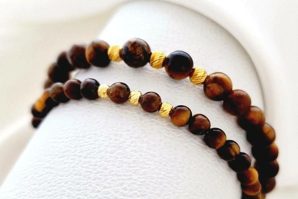 Set 2 Bratari cu Ochi de Tigru si Bilute din Argint Placat cu Aur – Eleganta naturala si energie pozitiva Acest set de 2 bratari este realizat din pietre semipretioase Ochi de Tigru de 6 mm si 4 mm, completate de bilute din argint placat cu aur galben de 3 mm si 4 mm. Piatra Ochi de Tigru este cunoscuta pentru proprietatile sale de protectie, curaj si echilibru emotional, fiind simbolul fortei interioare si al claritatii mentale. Designul rafinat face ca aceste bratari sa fie perfecte pentru a fi purtate zilnic sau oferite cadou unei persoane dragi. Comanda acum setul de bratari cu Ochi de Tigru si poarta cu tine puterea si protectia acestei pietre semipretioase! Acest produs unic este creat manual, cu o atentie deosebita la detalii, pentru a reflecta pasiunea Chic Bijoux de a transforma fiecare comanda intr-o adevarata opera de arta. Caracteristici produs: Set 2 bratari personalizate cu cate 3 bilute din Argint 925 placate cu Aur galben 18K Pentru EL : pietre Ochi de Tigru 6 mm Pentru EA : pietre Ochi de Tigru 4 mm In realizarea bratarilor este folosit un fir de silicon elastic pentru o rezistenta superioara. Bijuteria va ajunge la tine intr-un saculet elegant din catifea, impreuna cu certificatul de calitate ce atesta autenticitatea materialelor folosite. Greutate bilute si banut Argint: Aproximativ 0.93 grame RECOMANDARI: Nu scufundati bratara in lichide sau substante de curatare. Contactul zilnic cu produse chimice (spray-uri, detergenti, inalbitor, clor, diluanti etc.) pot de asemena sa afecteze bijuteria, existand riscul de a se desface si/sau de a se decolora. Procesul de productie Chic Bijoux: Aceasta bijuterie personalizata este realizata de la zero pentru fiecare comanda in parte. Dupa plasarea si confirmarea comenzii, incepe procesul ei de creatie: Realizare Design -> Taiere/Personalizare -> Finisare manuala -> Polish Final -> Ambalare -> Livrare! Datorita procesului de productie si a personalizarii bijuteriei dupa propria dorinta, gramajul final al produsului poate varia . Pe site este afisat gramajul obtinut prin cantarirea produsului din pozele de prezentare. Pretul include, pe langa costul gramului de Argint 925 , intregul proces de productie si personalizare, garantand un produs unic si special, creat doar pentru tine. De ce sa alegi Chic Bijoux? Fiecare bijuterie Chic Bijoux este realizata cu pasiune, respectand cele mai inalte standarde de calitate: Bijuterii unice realizate manual, personalizate pentru fiecare client. Ambalaj premium, perfect pentru a fi oferit cadou. Garantia calitatii: din 2010 producem bijuterii din metale pretioase de cea mai bună calitate folosind tehnologie de ultimă generație și finisare manuală. Dupa plasarea comenzii, vei fi contactat de un reprezentant al echipei Chic Bijoux pentru toate detaliile necesare personalizarii produsului si a ne asigura ca produsul final corespunde asteptarilor tale. Toate produsele din Argint 925 comercializate de Chic Bijoux sunt marcate cu titlul Argintului · 925.