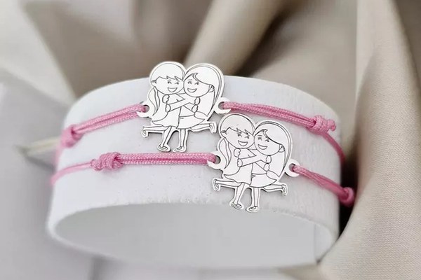 Set 2 bratari personalizate - Model decupat - 2 fete/surori/prietene imbratisate - Argint 925 - snur reglabil