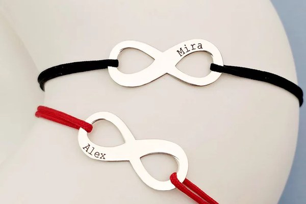 Set 2 bratari personalizate - Model infinit - Argint 925 - Snur reglabil, diverse culori