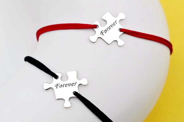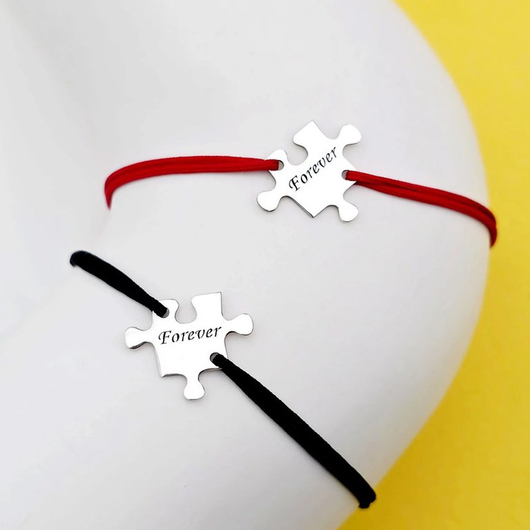 Set 2 bratari personalizate - Piese de puzzle - Argint 925, snur reglabil