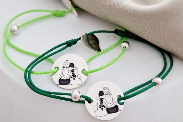 Setul de bratari Sisters forever este modalitatea perfecta de a-i spune ca Te iubesc surorii tale. Simbolul gravat pe banuti reprezinta 2 siluete. Acestea pot descrie relatia dintre 2 surori, 2 prietene bune sau chiar si mama si fiica. Gravura Sisters Forever de pe inimi poate fi personalizata cu orice altceva iti doresti (scrie-ne in casuta la alte detalii). Setul de bratari este astfel cadoul cadoul perfect pentru ziua de nastere a surorii, ziua prietenei celei mai bune sau ziua mamei. Bijuteria poate fi oferita si fara un motiv anume, ca si o amuleta reprezentativa a relatiei voastre speciale. DESPRE PRODUS: Toate panadantivele sunt realizate din Argint 925. Banutii de 15 mm sunt personalizati cu simbolul a 2 surori/prietene imbratisate de la spate. Pe verso puteti alege o gravura personala: nume, o data, un mesaj special etc. Inimioarele de 10 mm sunt atasate pe bratara la spate sub forma unui charm. Acestea sunt personalizate cu gravura Sisters forever . In lateralele banutilor pe snur sunt puse 2 bilute de 4 mm. Snurul bratarilor este din matase vegetala, iar marimea este reglabila. Bijuteriile pot fi placate cu Aur Galben, Roz sau Alb de 14K. Setul va ajunge la in ambalaj cadou Chic Bjoux gata de a fi daruit, impreuna cu certificatul de garantie, care atesta autenticitatea si caracteristicile metalului pretios. Gramaj aproximativ ARGINT 925: 2.87 grame Aceasta bijuterie personalizata este realizata de la zero pentru fiecare comanda in parte. Dupa plasarea si confirmarea comenzii incepe procesul ei de creatie: Realizare Design -> Taiere/Personalizare -> Finisare manuala -> Polish Final -> Ambalare -> Livrare! Datorita procesului de productie si a personalizarii bijuteriei dupa propria dorinta gramajul final al produsului poate fi diferit. Din acest motiv pe site este afisat gramajul obtinut prin catarirea produsului realizat in pozele de prezentare. Pretul produsului include pe langa costul gramului de Argint 925 si tot procesul de mai sus, necesar pentru realizarea unui produs cu adevarat special pentru tine. Toate produsele din Argint 925 comercializate de Chic Bijoux sunt marcate cu titlul Argintului· 925 · Dupa plasarea comenzii veti fi contactat de o colega din echipa Chic Bijoux pentru toate detaliile necesare realizarii si livrarii produsului.