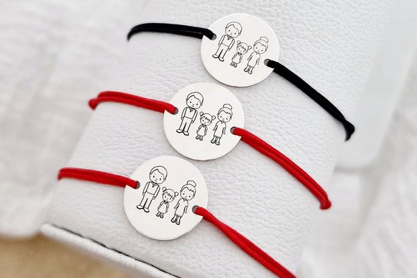 Modelul gravat pe fata bratarilor reprezinta iubire, si mai exact dragostea impartasita in cadrul unei familii. Setul uneste tot ce ai mai drag pe lume - Familia - reprezentand un cadou deosebit si o amintire impartasita si unica! Cele trei siluete gravate pe banuti pot fi alese in functie de membrii familiei tale. DESPRE PRODUS: Bratarile din set sunt create din Argint 925 prin taiere si gravare laser. Diametrul banutilor este de 15 mm Banutii sunt atasati de un snur de matase vegetala, marime reglabila. Pretul afisat include cele 3 bratari si gravarea. Gramaj aproximativ ARGINT 925 : 2.8 grame Aceasta bijuterie personalizata este realizata de la zero pentru fiecare comanda in parte. Dupa plasarea si confirmarea comenzii incepe procesul ei de creatie: Realizare Design -> Taiere/Personalizare -> Finisare manuala -> Polish Final -> Ambalare -> Livrare! Datorita procesului de productie si a personalizarii bijuteriei dupa propria dorinta gramajul final al produsului poate fi diferit. Din acest motiv pe site este afisat gramajul obtinut prin catarirea produsului realizat in pozele de prezentare. Pretul produsului include pe langa costul gramului de Argint 925 si tot procesul de mai sus, necesar pentru realizarea unui produs cu adevarat special pentru tine. Toate produsele din Argint 925 comercializate de Chic Bijoux sunt marcate cu titlul Argintului· 925 · Dupa plasarea comenzii vei fi contactat de o colega din echipa Chic Bijoux pentru toate detaliile necesare personalizarii produsului.