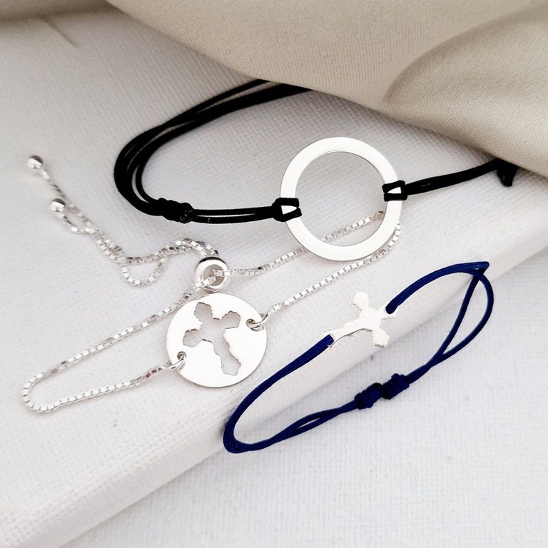 Setul de 3 bijuterii din Argint 925 este cadoul perfect pentru intreaga familie. Cate o bratara pentru fiecare membru al familiei: mama, tata si copil. Setul este compus din: Pentru Mama: Bratara banut cu stea decupata Pentru Tata: Bratara disc Pentru Copil: Bratara cruce Piesele unite formeaza un intreg, astfel reprezentand conexiunea si iubire din cadrul unei familii. DESPRE PRODUSE: Bijuteriile sunt create din Argint 925. Bratara mamei are banutul de 15 mm si este atasat de un lantisor de dama reglabil cu biluta glisanta. Bratara tatalui are un disc de 20 mm atasat de un snur negru reglabil. Bratara copilului sub forma de cruce are dimensiunea de 12 mm si este atasata de un snur reglabil, diverse culori. Setul va ajunge la in ambalaj cadou Chic Bjoux gata de a fi daruit, impreuna cu certificatul de garantie, care atesta autenticitatea si caracteristicile metalului pretios. Gramaj aproximativ ARGINT 925: 3.34 grame Aceasta bijuterie personalizata este realizata de la zero pentru fiecare comanda in parte. Dupa plasarea si confirmarea comenzii incepe procesul ei de creatie: Realizare Design -> Taiere/Personalizare -> Finisare manuala -> Polish Final -> Ambalare -> Livrare! Datorita procesului de productie si a personalizarii bijuteriei dupa propria dorinta gramajul final al produsului poate fi diferit. Din acest motiv pe site este afisat gramajul obtinut prin catarirea produsului realizat in pozele de prezentare. Pretul produsului include pe langa costul gramului de Argint 925 si tot procesul de mai sus, necesar pentru realizarea unui produs cu adevarat special pentru tine. Toate produsele din Argint 925 comercializate de Chic Bijoux sunt marcate cu titlul Argintului· 925 · Dupa plasarea comenzii veti fi contactat de o colega din echipa Chic Bijoux pentru toate detaliile necesare personalizarii produsului.