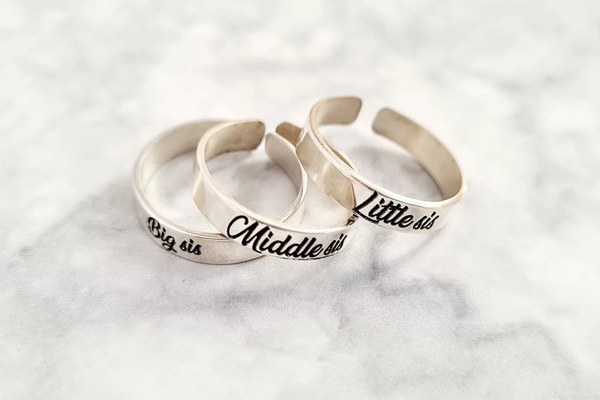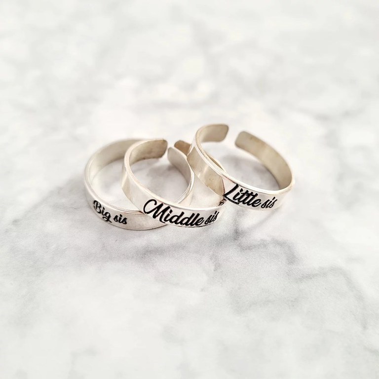 Set 3 inele personalizate - Little/Middle/Big sis - Argint 925