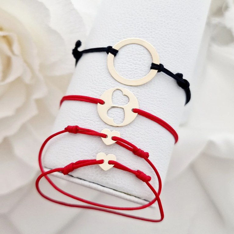 Setul de 4 bratari din Aur Galben de 14K este cadoul perfect pentru intreaga familie. Cate o bratara pentru fiecare membru al familiei: mama, tata si copii. Pentru Mama: Bratara banut cu inima decupata, diametru 15 mm Pentru Tata: Bratara disc, diametru 20 mm Pentru Copii: Bratara inimioara, dimensiunea fiecareia 6 mm Cele patru pandantive unite formeaza un intreg, astfel reprezentand conexiunea si iubire din cadrul unei familii. Pandantivele realizate integral din Aur Galben de 14K sunt atasate de un snur din matase vegetala, marime reglabila, cel al tatalui fiind un model mai gros. Gramaj aproximativ AUR 14K (585): 1.26 grame Aceasta bijuterie personalizata este realizata de la zero pentru fiecare comanda in parte. Dupa plasarea si confirmarea comenzii incepe procesul ei de creatie: Realizare Design -> Taiere/Personalizare -> Finisare manuala -> Polish Final -> Ambalare -> Livrare! Pretul produsului include pe langa costul gramului de Aur 14K si tot procesul de mai sus, necesar pentru realizarea unui produs cu adevarat special pentru tine. Datorita procesului de productie si a personalizarii bijuteriei dupa propria dorinta gramajul final al produsului poate fi diferit. Din acest motiv pe site este afisat gramajul obtinut prin catarirea produsului realizat in pozele de prezentare. Toate produsele din Aur comercializate de Chic Bijoux sunt marcate cu titlul Aurului de 14K · 585 · Dupa plasarea comenzii vei fi contactat de un reprezentant din echipa Chic Bijoux pentru toate detaliile necesare personalizarii produsului.