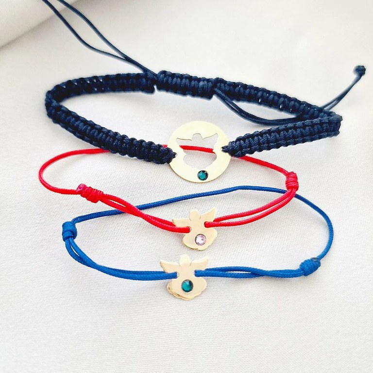 Set Bijuterii Familie Personalizata – 3 Bratari – Ingerasi cu Cristale Swarovski – Aur galben 14K – Snur Reglabil