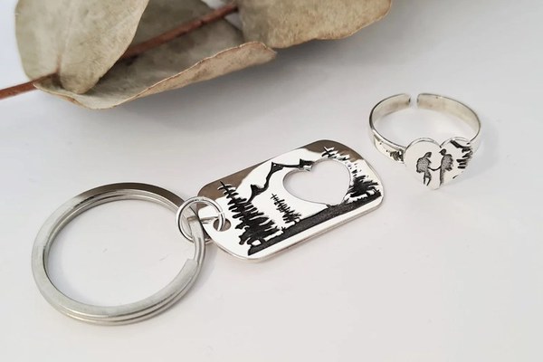 Set breloc si Inel - Cuplu aventurier - Argint 925