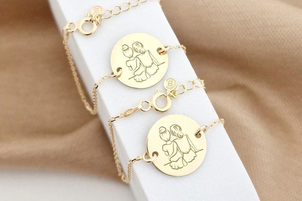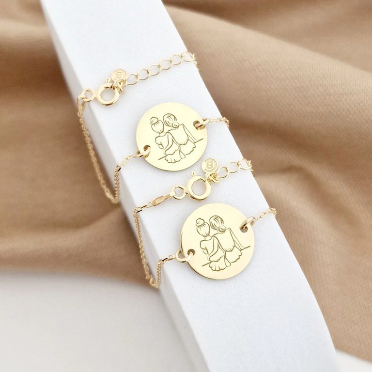 Bratarile din set sunt create din Argint 925 placat cu Aur Galben 18K prin taiere si gravare laser, avand diametrul banutului de 15 mm si fiind atasate de un lantisor din Argint 925 placat cu Aur Galben 18K. Pretul afisat este pentru ambele bratari si gravarea inclusa. Un cadou deosebit, o amintire pretioasa impartasita cu surioara ta sau cu cea mai buna prietena! Gramaj aproximativ ARGINT 925:3.6 grame Aceasta bijuterie personalizata este realizata de la zero pentru fiecare comanda in parte. Dupa plasarea si confirmarea comenzii incepe procesul ei de creatie: Realizare Design -> Taiere/Personalizare -> Finisare manuala -> Polish Final -> Ambalare -> Livrare! Datorita procesului de productie si a personalizarii bijuteriei dupa propria dorinta gramajul final al produsului poate fi diferit. Din acest motiv pe site este afisat gramajul obtinut prin catarirea produsului realizat in pozele de prezentare. Pretul produsului include pe langa costul gramului de Argint 925 placat cu Aur Galben 18K si tot procesul de mai sus, necesar pentru realizarea unui produs cu adevarat special pentru tine. Toate produsele din Argint 925 comercializate de Chic Bijoux sunt marcate cu titlul Argintului· 925 ·
