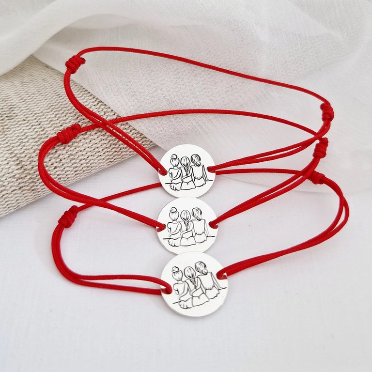 Trei surori, trei flori, trei prietene, o legatura puternica, o inima ce bate de trei ori mai mult ... Un cadou deosebit! O amintire impartasita si unica! Bratarile din set sunt create din Argint 925 prin taiere si gravare laser, avand diametrul banutului de 15 mm si fiind atasate fiecare unui snur de matase vegetala, marime reglabila. Pretul afisat este pentru toate cele 3 bratari si gravarea inclusa. Gramaj aproximativ ARGINT 925 : 2.52 grame Aceasta bijuterie personalizata este realizata de la zero pentru fiecare comanda in parte. Dupa plasarea si confirmarea comenzii incepe procesul ei de creatie: Realizare Design -> Taiere/Personalizare -> Finisare manuala -> Polish Final -> Ambalare -> Livrare! Datorita procesului de productie si a personalizarii bijuteriei dupa propria dorinta gramajul final al produsului poate fi diferit. Din acest motiv pe site este afisat gramajul obtinut prin catarirea produsului realizat in pozele de prezentare. Pretul produsului include pe langa costul gramului de Argint 925 si tot procesul de mai sus, necesar pentru realizarea unui produs cu adevarat special pentru tine. Toate produsele din Argint 925 comercializate de Chic Bijoux sunt marcate cu titlul Argintului· 925 ·