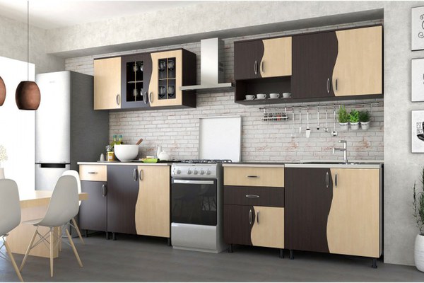 Material: Corp: Pal Melaminat Wenge Front: Pal Melaminat Wenge+Mesteacan Dimensiune Bucatarie: Lungime 260 x Adancime 60 x Inaltime 200cm Dimensiuni corpuri: ( Lungime x Adancime x Inaltime ) Corp Inferior de 80cm ( x 1 buc. ) : 80 x 47 x 83cm...