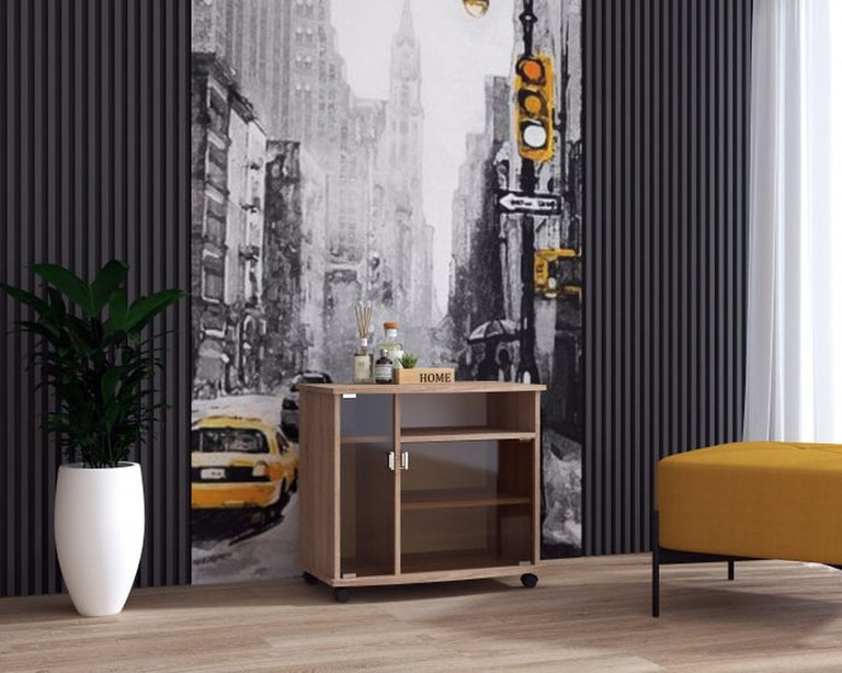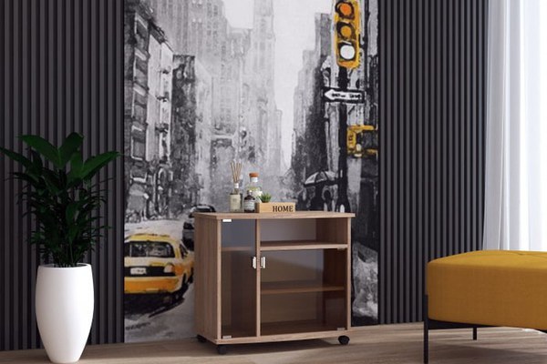 Comodă pentru dormitor, cu design modern, prevăzută cu uși cu geam și roți, realizată sticlă fumurie, ușor de integrat și manevrat. Dimensiuni Caracteristică Dimensiune Lungime 70 cm Lățime 43 cm Înălțime 64 cm Greutate 17 kg Componente...