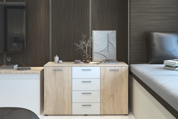 Comoda Lileia RO Sonoma Alb 134x41x81 cm