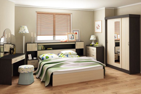 Material: Corp: Pal melaminat Wenge Front: Pal melaminat Kiruna Dimensiuni Corpuri: Dulap 3 Usi Glisante - cu rafturi si bara haine ( x 1 buc ): Lungime 130 x Adancime 50 x Inaltime 203cm; Pat 2 persoane ( x 1 buc ): Lungime 165 x Adancime...
