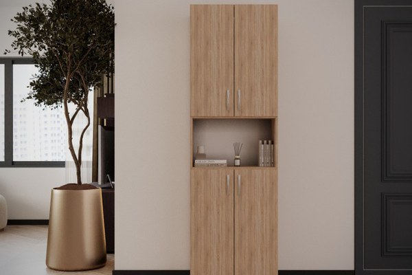 Dimensiuni: Lungime 60 x Adancime 37 x Inaltime 196cm Nuante: Pal melaminat Sonoma Caracteristici: Dulapul este prevazut cu 5 spatii pentru depozitare Produsul se livreaza in pachete , cu schita de montaj si feroneria necesara pentru...