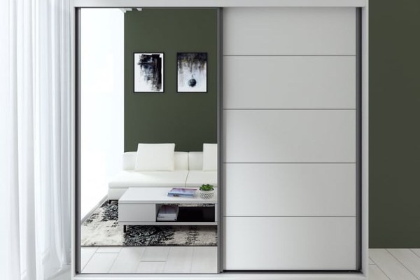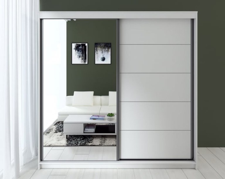 Dulap modern cu uși culisante, ideal pentru dormitor sau hol, conceput pentru depozitare eficientă. Este prevăzut cu bară pentru haine și rafturi pentru organizare, iar oglinda aplicată pe una dintre uși, împreună cu sistemul de culisare din aluminiu,...