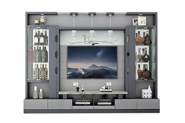 Material: Corp: MDF 16mm Front: MDF vopsit Dimensiuni: Lungime - 320 x Adancime - 40 x Inaltime 220 - cm Caracteristici: Spoturi cu led Boxe Player cu bluetooth si usb Polite din sticla Usi din sticla Produsul se livreaza in pachete,...