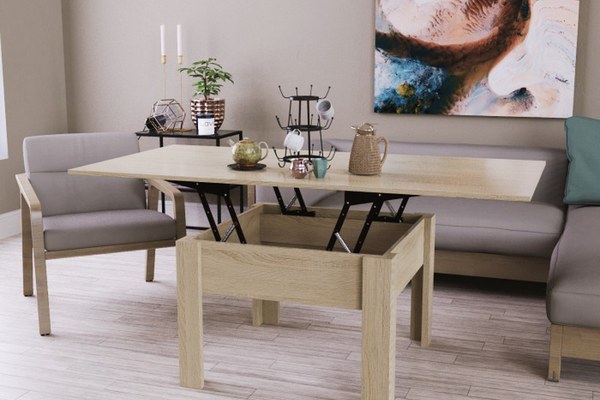 Detalii produs : Masa multifunctionala extensibila este solutia inteligenta pentru living, pentru un spatiu aerisit si neincarcat. Este o masuta de cafea care prin forma si design se incadreaza in tendintele actuale. La nevoie, cu ajutorul...