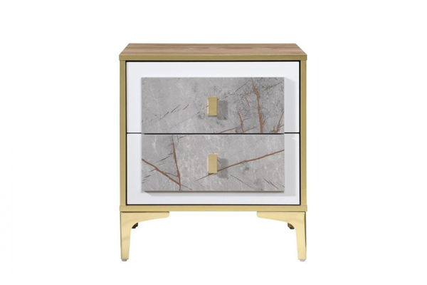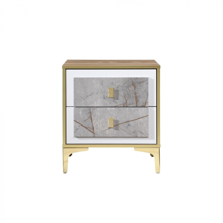 Noptiera Nero cu 2 sertare Marmura cu Aur 50x41x57 cm