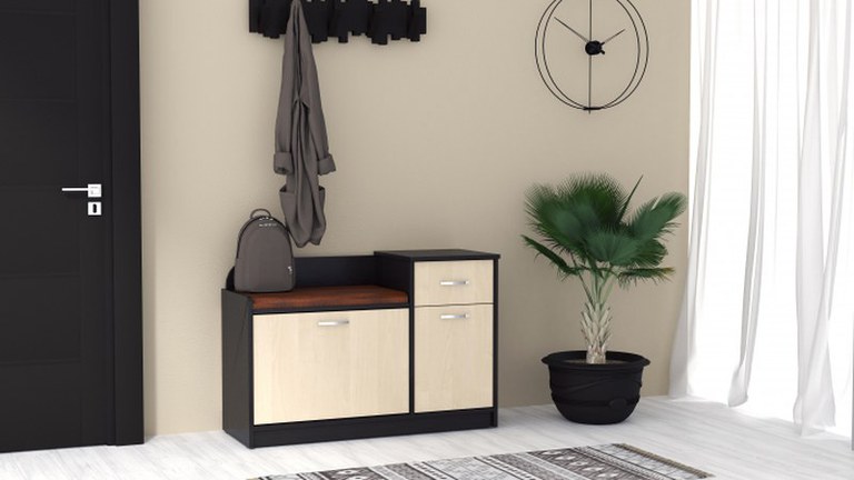 Pantofar modern, realizat din PAL melaminat, prevăzut cu spațiu de depozitare pentru încălțăminte și șezut tapițat. Ideal pentru hol, combină funcționalitatea cu un design practic și ușor de integrat în orice amenajare. DIMENSIUNI Caracteristică...