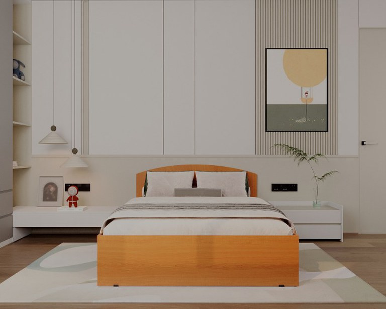 Material : Pal melaminat Cires Dimensiuni : Lungime 145 x Adancime 204 x Inaltime 32cm ( Inaltime tablie mare - 80cm ) Pat pentru saltea 140 x 200, Salteaua NU este inclusa! Caracteristici : Patul este prevazut in partea inferioara cu picioruse...
