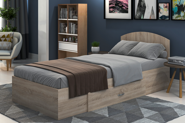 Material : Pal melaminat Sonoma Dimensiuni : Lungime 95 x Adancime 204 x Inaltime 32cm ( Inaltime tablie mare - 80cm ) Pat pentru saltea 90 x 200, Salteaua NU este inclusa! Caracteristici : Patul este prevazut in partea inferioara cu picioruse...
