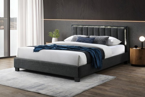 Pat tapitat Comfort 1 cu LED cadru din lemn cu somiera fixa Gri 160x200 cm