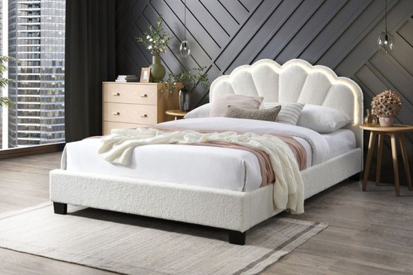 Pat tapitat Comfort 2 cu LED cadru din lemn cu somiera fixa Crem 140x200 cm
