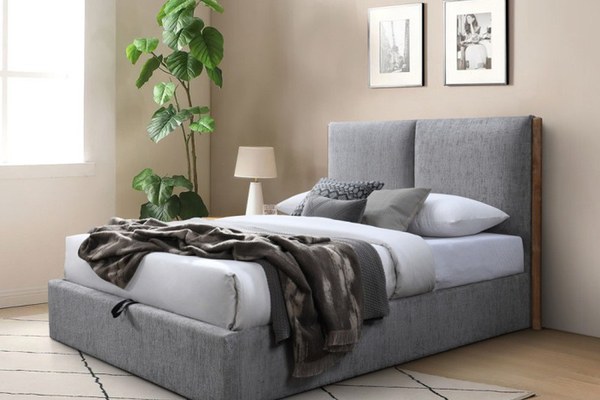 Pat tapitat Nordic Gri cu somiera metalica rabatabila si spatiu de depozitare 160x200
