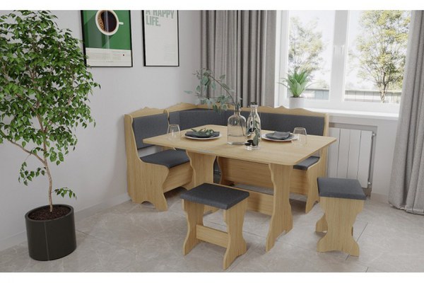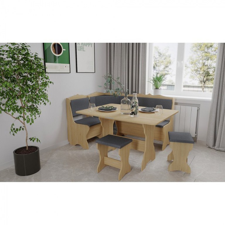 Dimensiuni Corpuri : Coltar Tapitat : 152 x 112 x 87cm Sezut : Adancime 55 x Inaltime 42cm Masa Extensibila : Stransa : 90 x 59 x 74cm Extinsa : 118 x 90 x 74cm Taburet : 36 x 29 x 44cm Materiale: Sezut + Spatar : Material Textil Cadru...